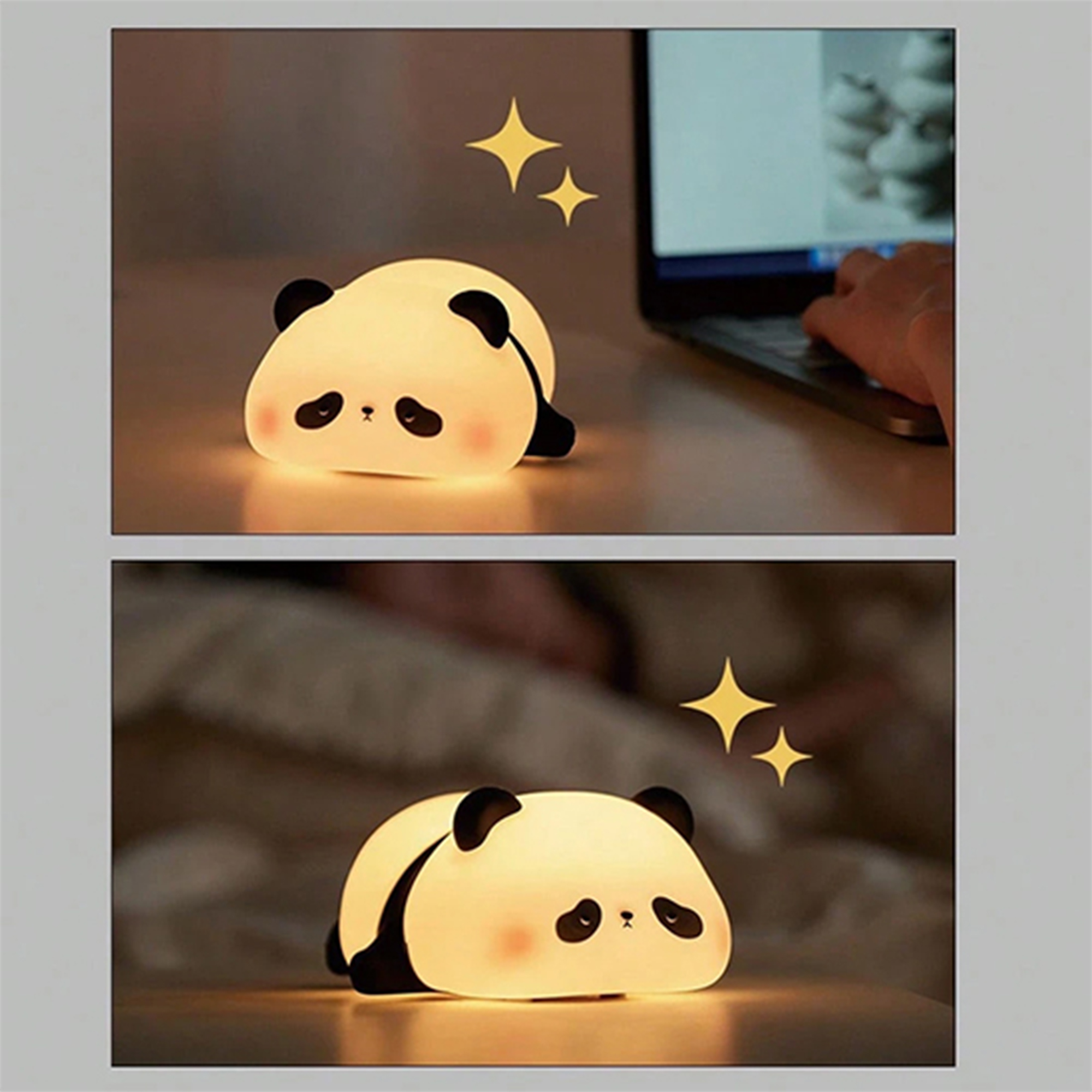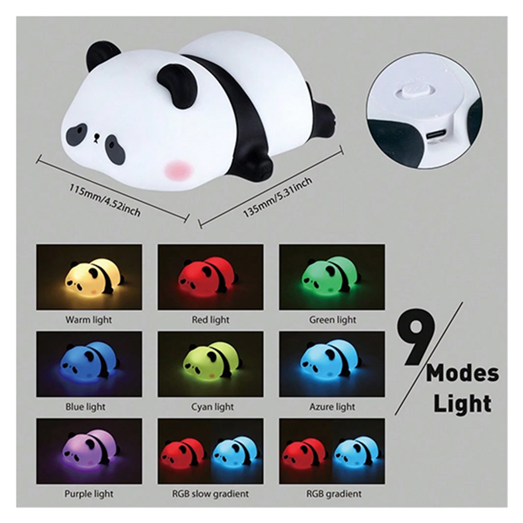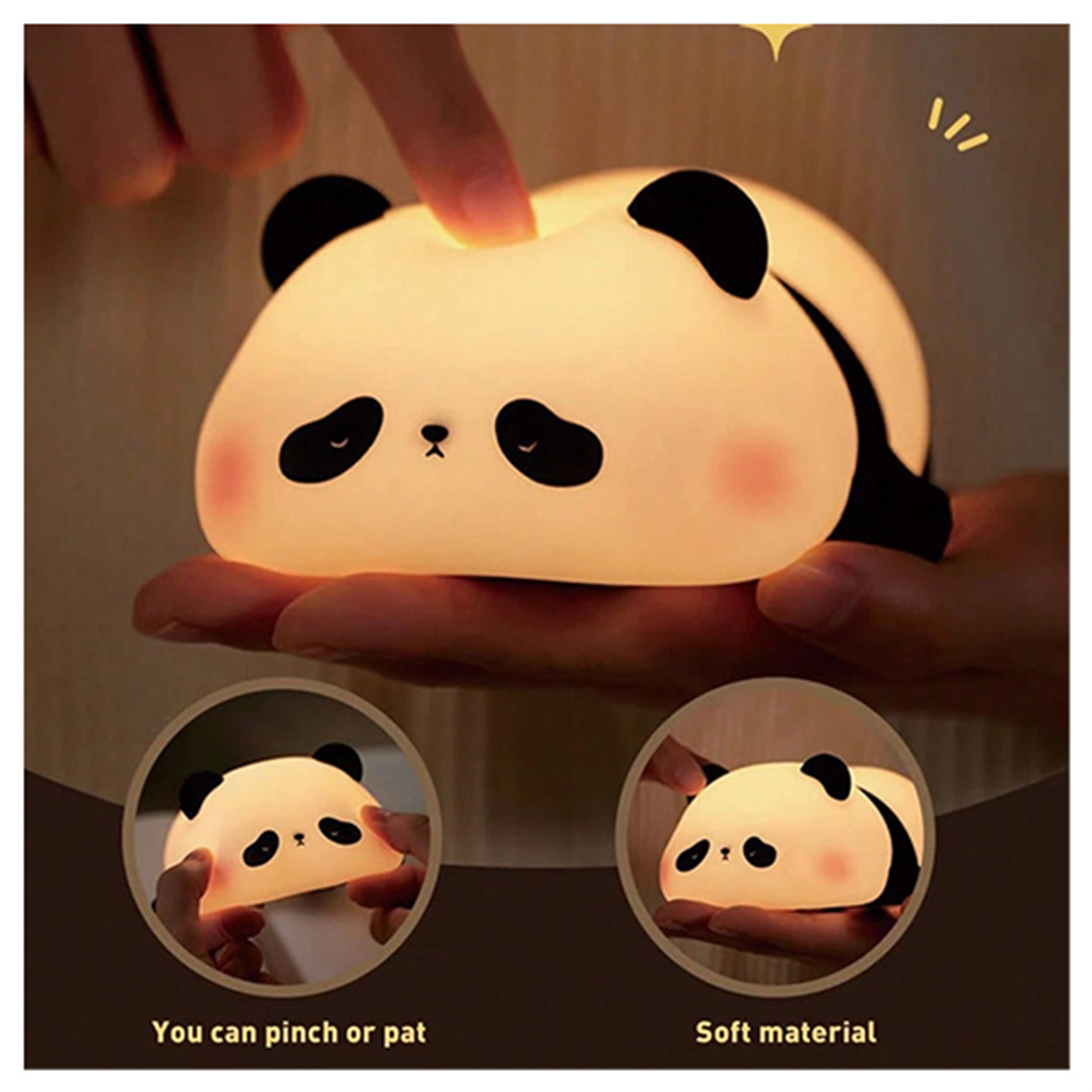 The Panda Night Light is designed to provide a gentle and adjustable glow for use in bedrooms, nurseries, and other spaces. Made from BPA-free silicone, the light features a soft and flexible surface that is safe to handle. Its compact and lightweight design makes it easy to move between rooms or carry during travel. The light includes three brightness settings and a 30-minute auto-off timer to support different nighttime needs. A tap control function allows simple operation for turning the light on or off and adjusting brightness. The built-in 1200mAh rechargeable battery is powered by a Type-C USB cable for convenient charging. With a playful panda shape, this light serves as both a functional lighting solution and a decorative accent for children’s rooms, play areas, and household spaces. It can also be considered for seasonal or occasional gift giving.